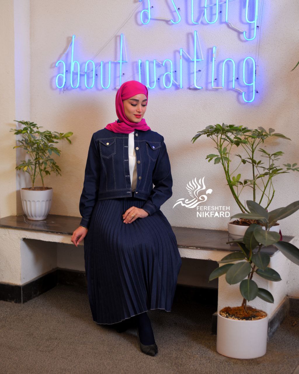 ست جین گلدوزی با دامن جنس:جین شسته شده ترک سایزبندی: 36 تا 56 قد کت:حدود50 قد دامن:حدود90 رنگ بندی:سورمه ای و سبز