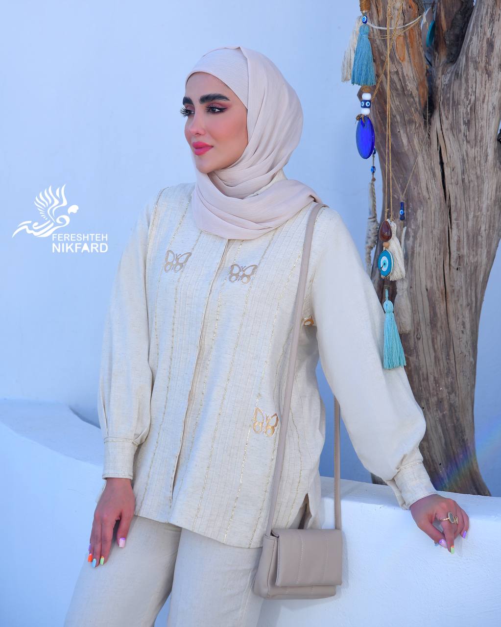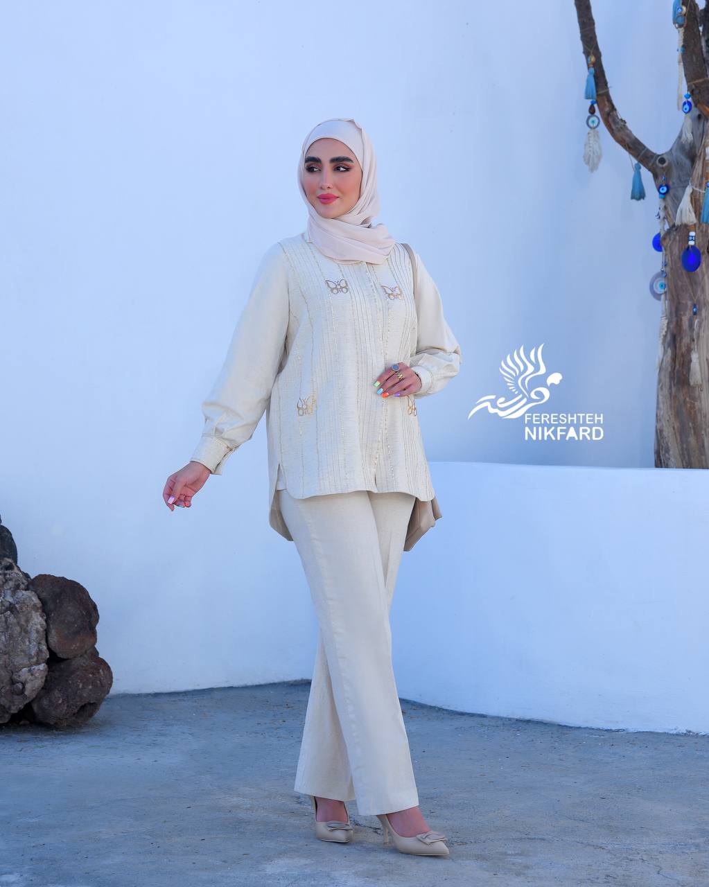 جنس : ترکیب لینن چرخکاریِ کار شده هندی و لینن نچرال ترک